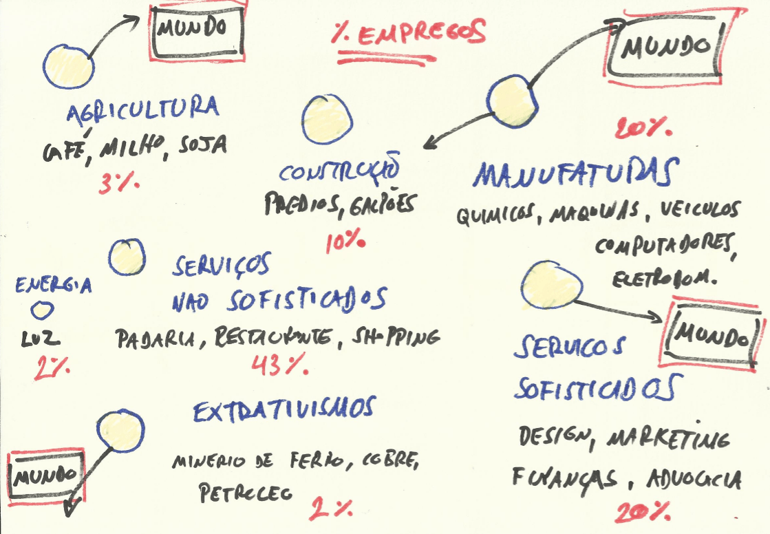 O mapa esquemático de porcentagem de empregos totais acima mostra uma composição típica de empregos de uma economia rica e desenvolvida: Alemanha, Japão, Coreia do Sul, Estados Unidos e Reino Unido. Pelo menos 30% da população esta ocupada nos dois setores de ponta em termos de produtividade per capita intrínseca: manufaturas e serviços sofisticados. São […]